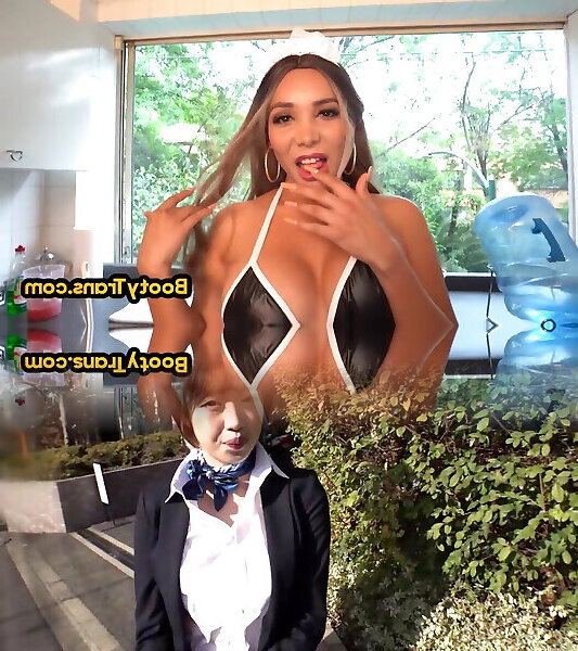 Chinese she-male with a humongous beefstick takes a loosening tub