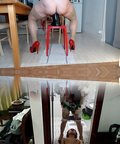 Anal Gaping with hookup machine for TS submissive in sexy lingerie