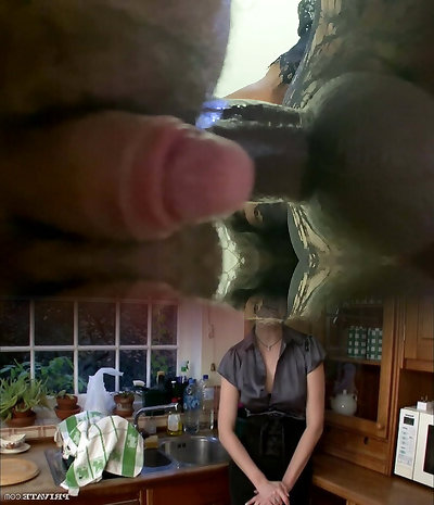 Girlfriend with zucchini fucked busty milf in the kitchen, lesbians POV.